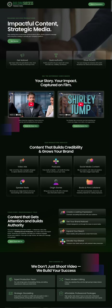 We built a professional website for Building Success Production agency. Their web design puts them in the forefront showcasing a premium production agency.